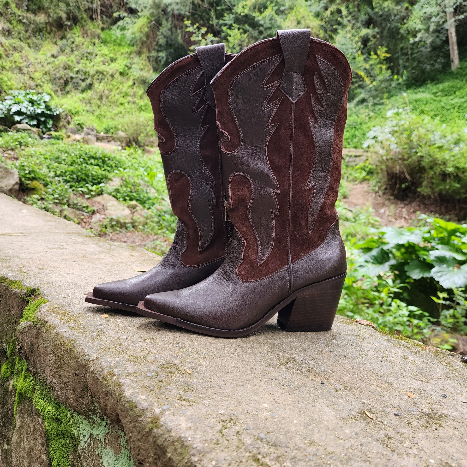 Las vaqueras Mykonos, disponibles en negro y café, cuentan con una altura perfecta de 7 cm que te eleva con actitud, manteniéndote estilizada y cómoda durante horas.