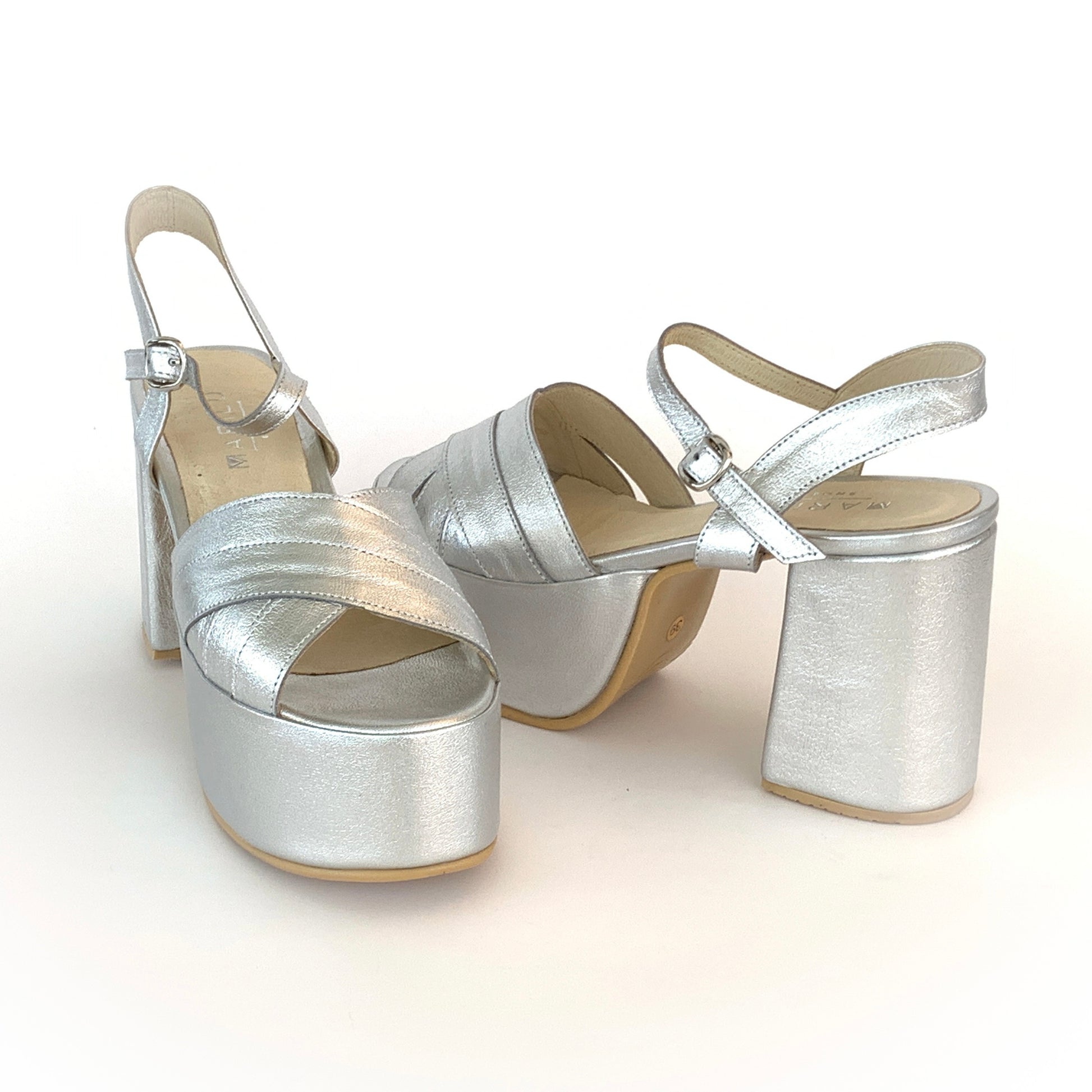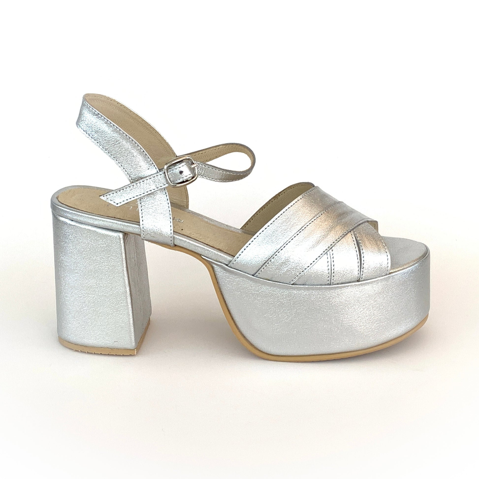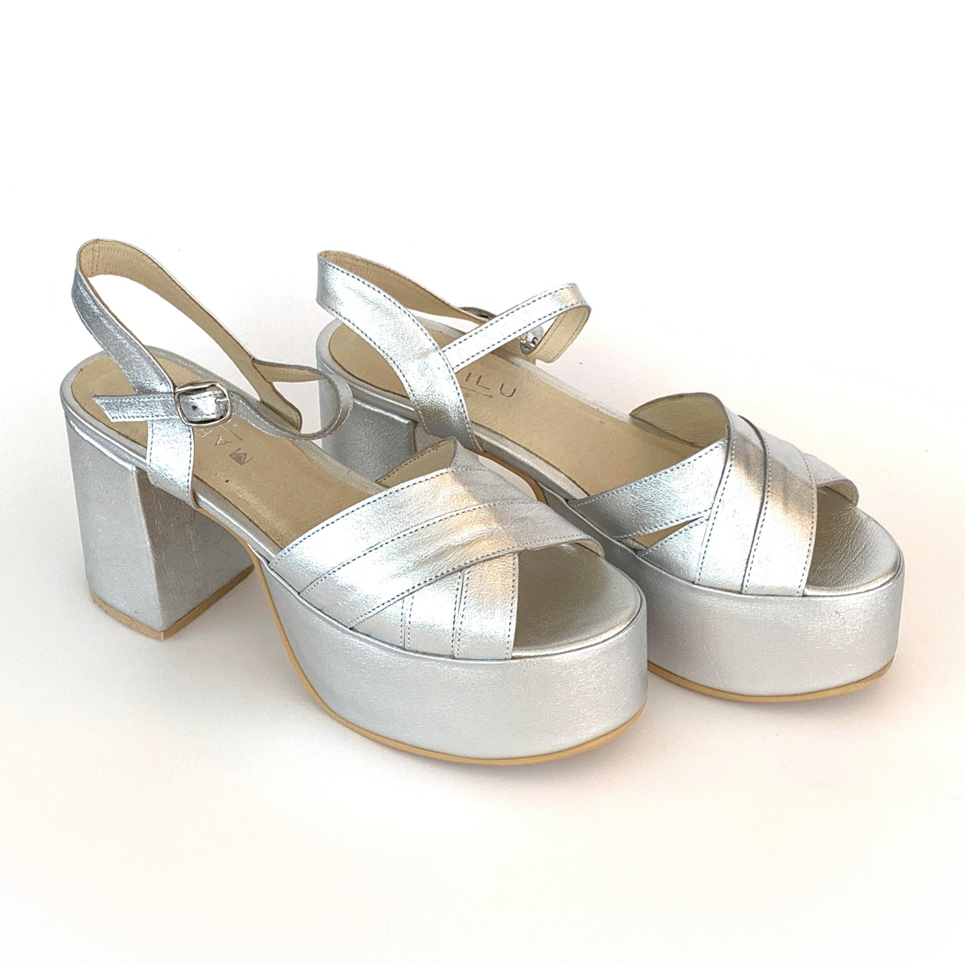 Estos zapatos de plataforma con un cuero plateado liso son ideales para combinar con tu vestido en tu próxima fiesta.