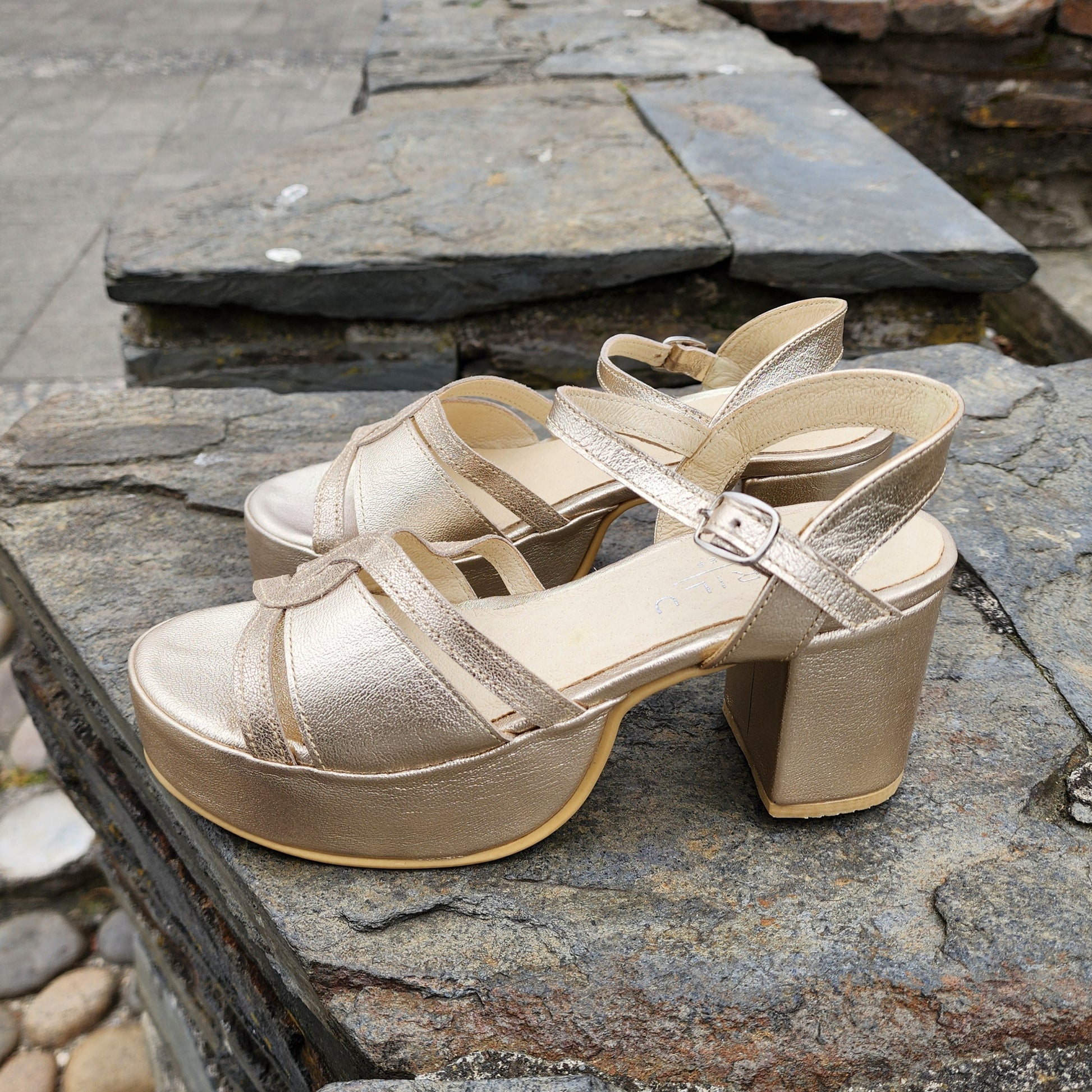 Julie Gold destaca en nuestra colección con un tono oro viejo vibrante que no pasará desapercibido. Estas zapatillas serán el toque ideal para tu evento, combinando estilo llamativo con una comodidad excepcional. Con un tacón de 8 cm, te permitirán brillar y apostar por cada paso en la pista de baile con confianza y energía.