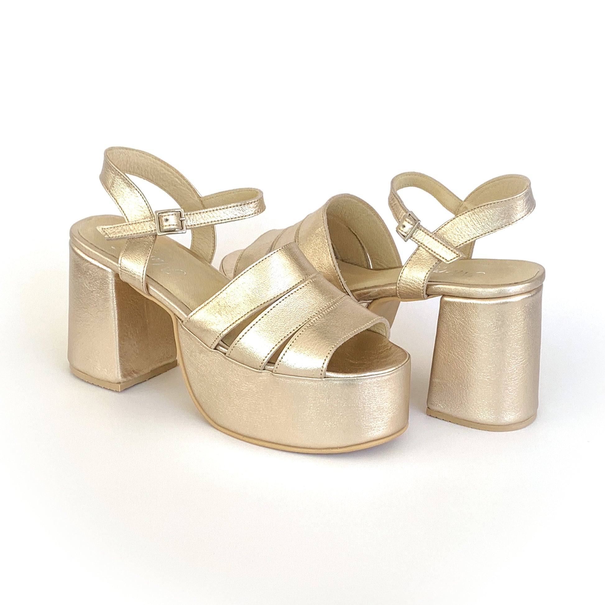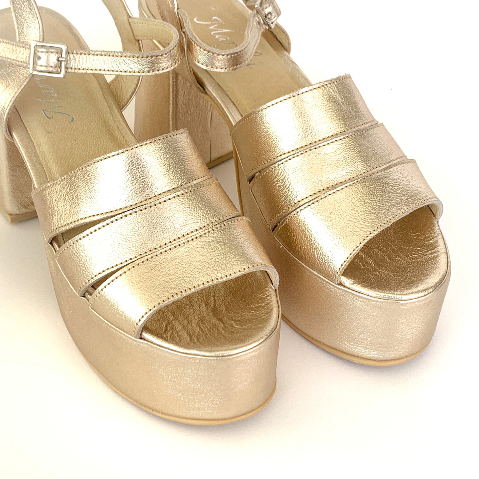 Altura de 9.5cm de taco y 5.5cm de plataforma.