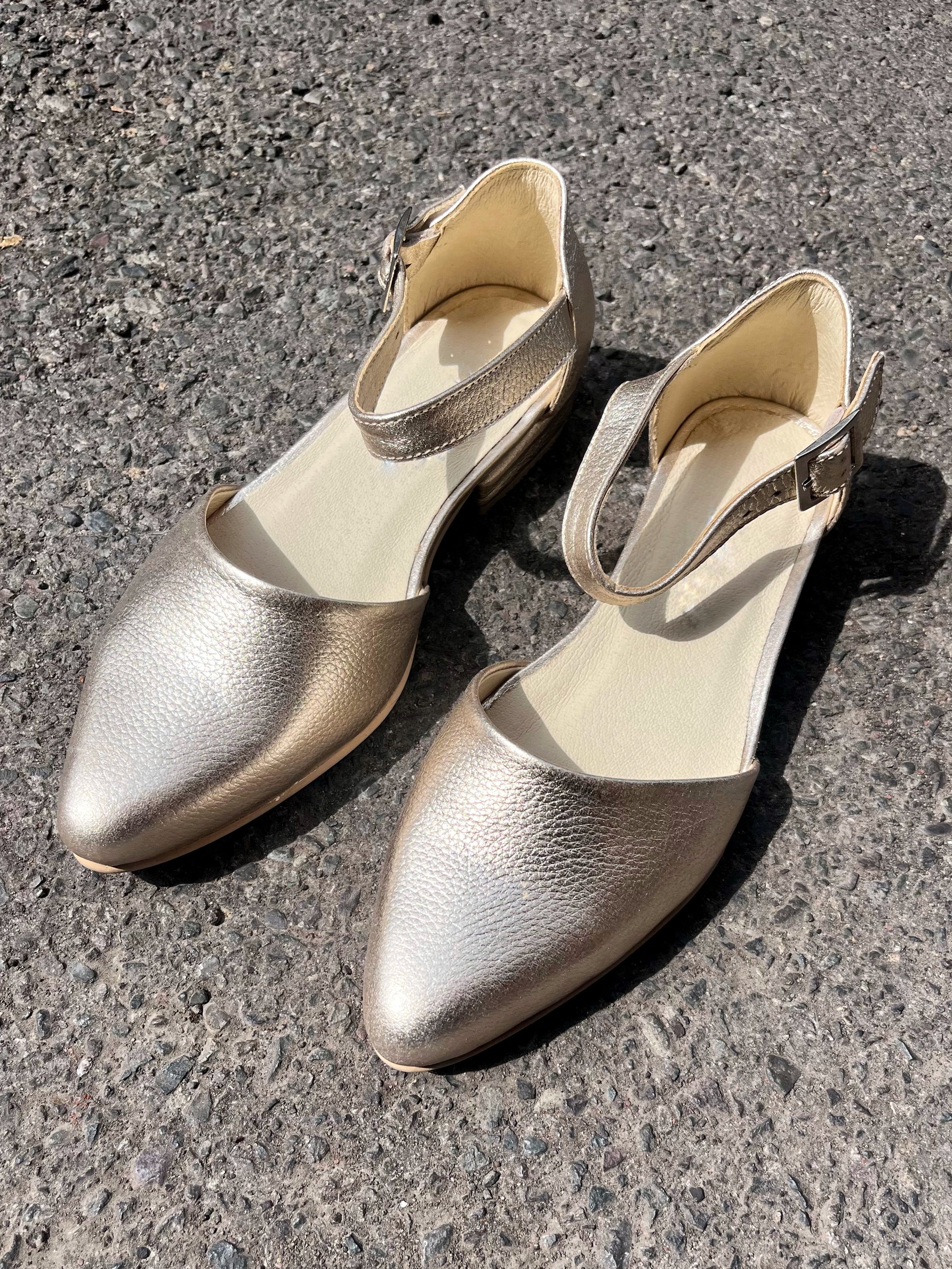 Estos zapatos combinan la comodidad de su taco de 2,5 cm y la elegancia de su cuero en color dorado para tus mejores eventos o para usarlos cada día. ¿Lista para dar un toque de clase a tu look?