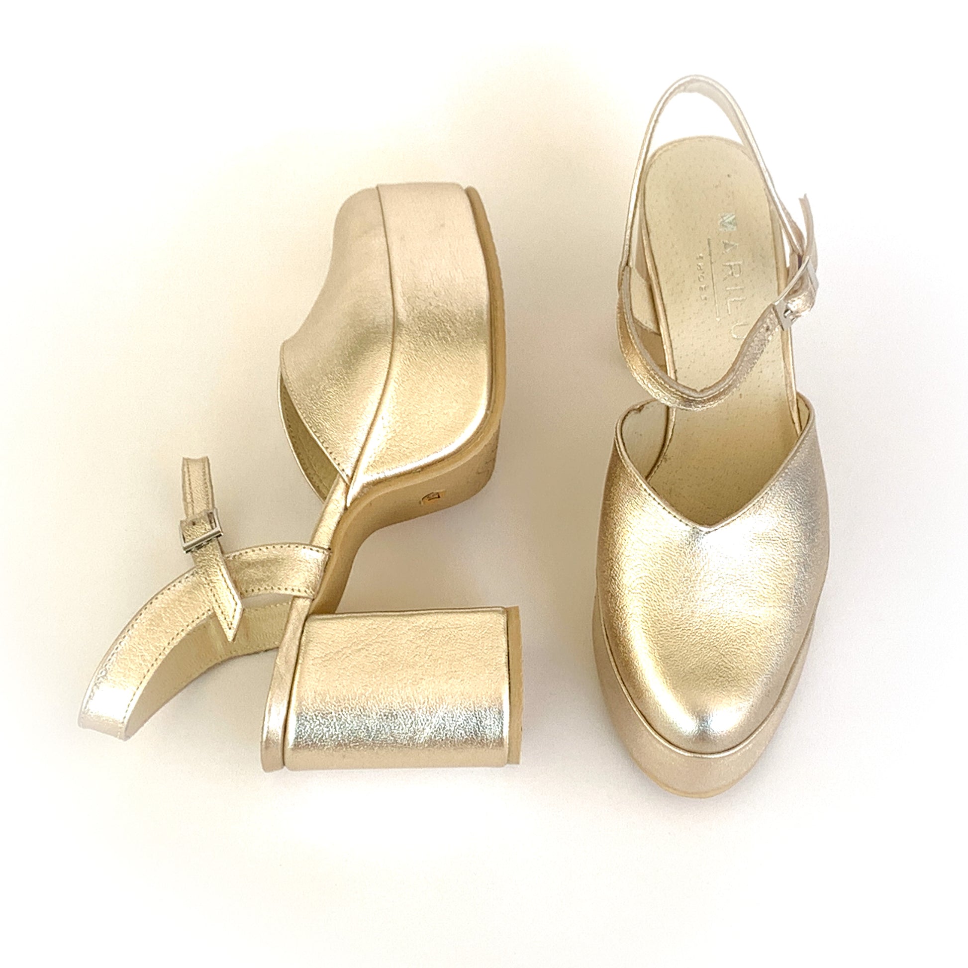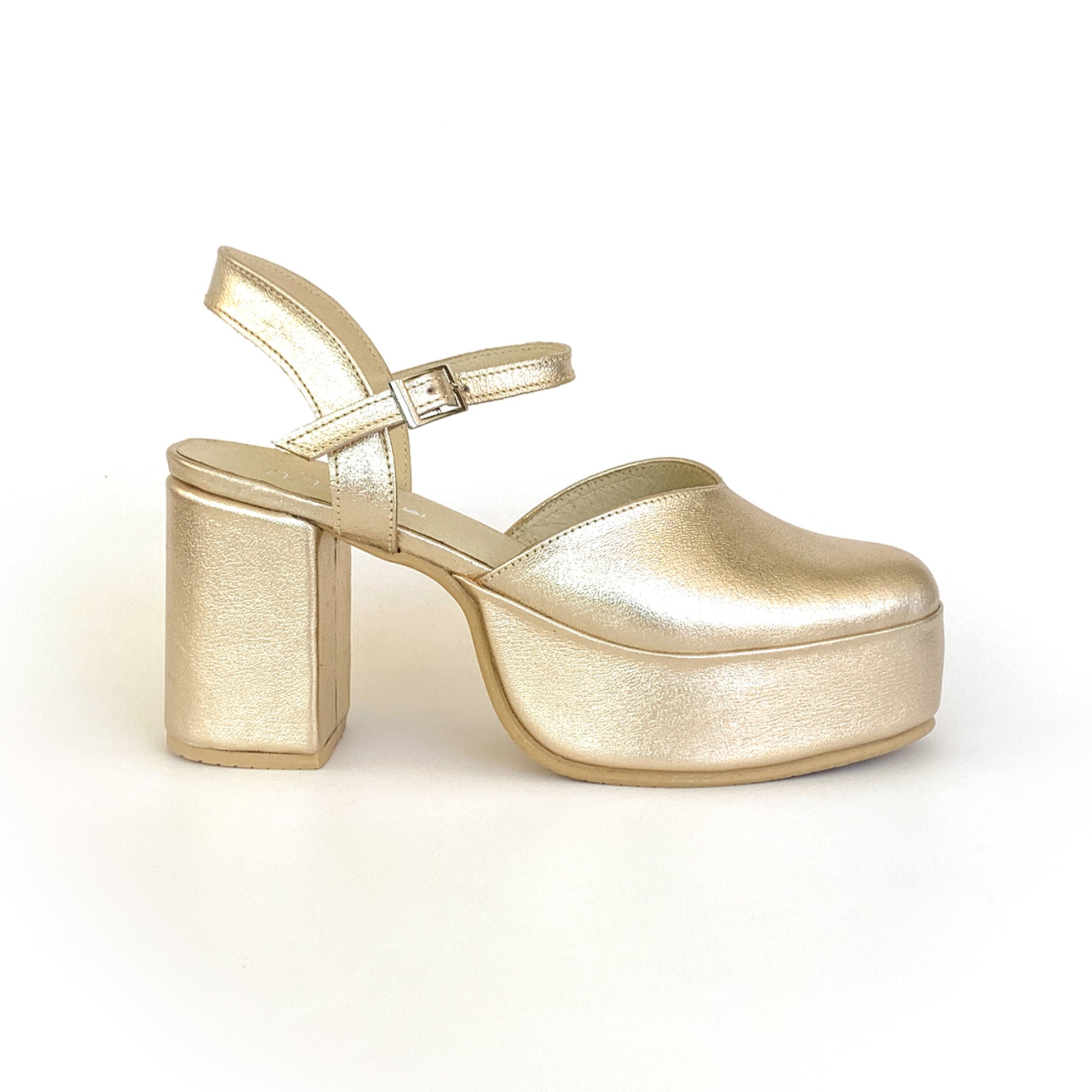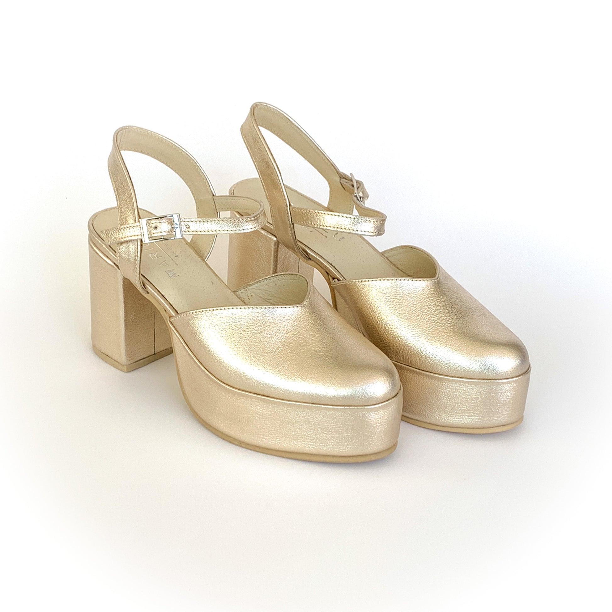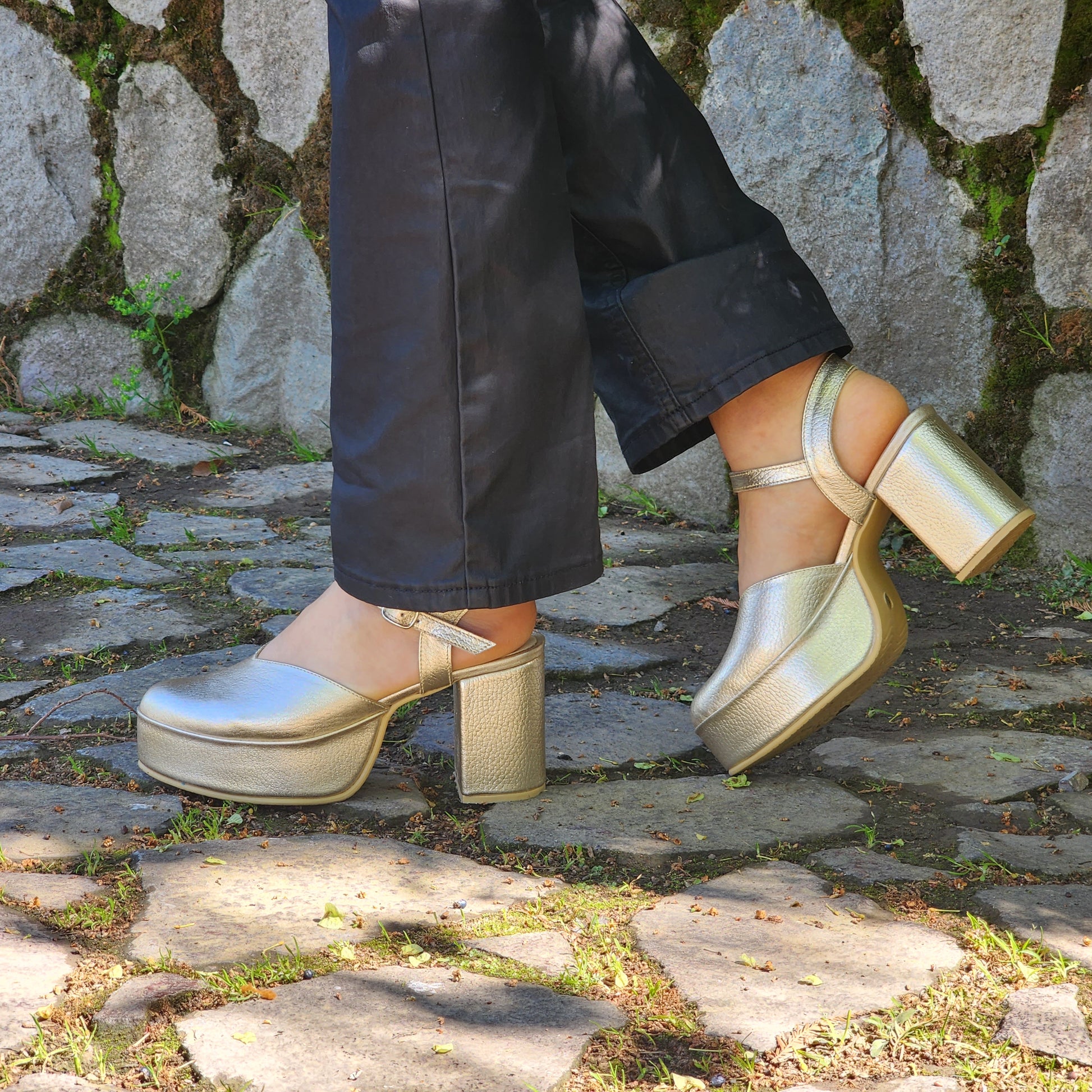 Adéntrate en el mundo de la moda con los zapatos LOLA NÍQUEL. Confeccionados en cuero oro viejo y un tacón de 9cm, son extraordinariamente cómodos y perfectos para cualquier look.